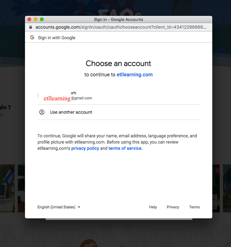 Precision Education Solution (pvt) Ltd > FAQ > How can I login with google account? How can I login with google account? TPLIT HK December 24, 2019 FAQ 0 Share Tweet Pin it Click the icon as the below image select "Continue with Google" Button Choose your google account or choose "Use another account" to enter your google email address in Sign in page Enter your gmail password and click "Next" to sign in You will find your Google avatar after Login successful Login. Previous Post How can I Register a New account? Next Post Where can I enter my Access Code? Related Posts Customer Reviews January 8, 2024 Marketing A Child’s First Library of Learning & English Time. November 11, 2023 Marketing Register now… September 6, 2023 Comments are closed.