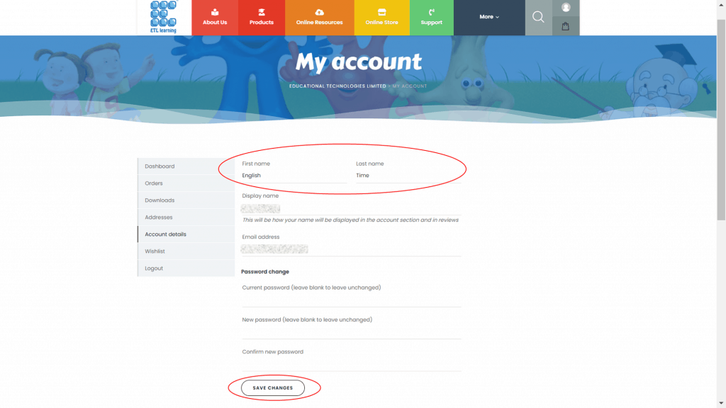 Precision Education Solution (pvt) Ltd > FAQ > Why my name is not on my English-Time™ certificate? Why my name is not on my English-Time™ certificate? ETL learning July 30, 2020 FAQ 0 Share Tweet Pin it Why my name is not on the certificate? It is because your account profile is not yet completed. Please log in your ETL Learning account to complete your account profile. 1. Log in your account. 2. Go to ‘Account Details’. 3. Enter your first name and last name, then click ‘SAVE CHANGES’. Previous Post A Boy from Pakistan Enjoying Early Learning Program Next Post Healthy Minds Related Posts Customer Reviews January 8, 2024 Marketing A Child’s First Library of Learning & English Time. November 11, 2023 Marketing Register now… September 6, 2023 Comments are closed.